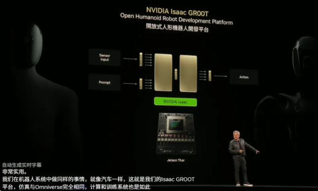 黄仁勋在演讲中透露,英伟达正在与汽车行业携手推进机器人系统,利用Isaac Groot平台。该平台由名为Jetson Thor的新处理器驱动,专为机器人应用设计,适用于从自主车辆到人机系统的广泛领域。英伟达的Isaac操作系统则负责管理神经网络处理、传感器处理和数据管道,利用专业团队开发的预训练模型来增强系统能力。