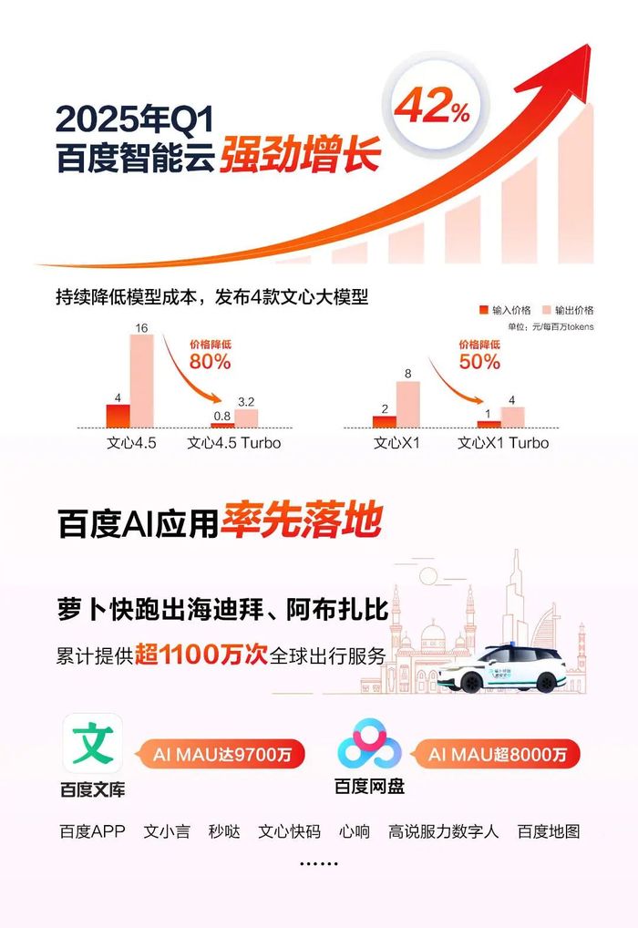数据显示,一季度百度智能云营收同比增速达42%,呈现出强劲增长势头。
