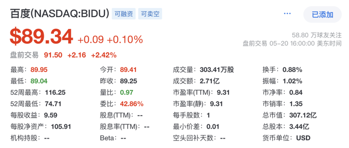 据悉,在2025年一季报发出后,百度盘前涨超2%。