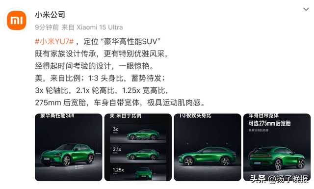 5月22日,小米集团董事长雷军在小米15周年战略新品发布会上宣布,小米YU7正式发布,定位 “豪华高性能SUV”。