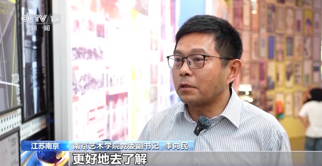 南京艺术学院党委副书记 李向民:大概有200多家文化科技企业到南京艺术学院来招人,同时,他们也会走到我们这个展厅里面来,根据作品来找作者,更好地去了解。