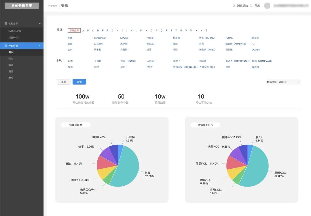 某美妆领域MCN通过系统预判到“纯净护肤”概念即将爆发,提前布局相关选题,单月商单量增长120%;对品牌商而言,易投AI提供从资源池管理、策略制定到投后复盘的一站式服务,AI生成的投放效果报告可精准定位高ROI内容,帮助某快消品牌将预算利用率提升40%。