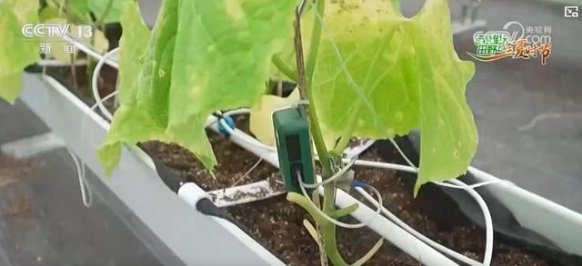 不同于传统农业传感器,智能环对微小形变具有高灵敏度,能精准捕捉低于10微米级的茎秆周长变化。农场内,一株株黄瓜也安装了“智能环”,这个黑白色纳米材料的传感装置,通过旁边的小绿盒子收集数据,并传输到云服务器上,作为农户们田间管理的依据,从而进行远程灌溉、施肥。