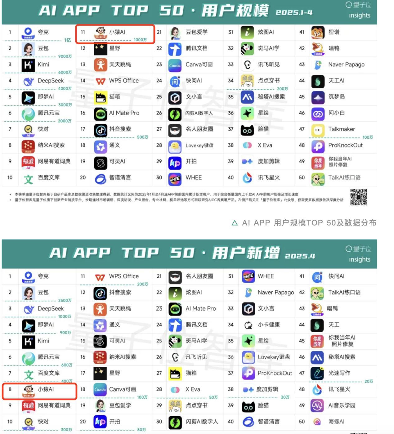 量子位智库《AI APP TOP 50用户新增》