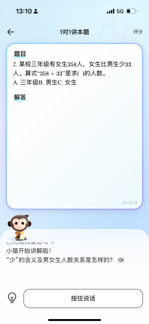 产品上线前,小猿团队邀请近百名一线教师参与功能实测,从讲解逻辑、语言亲和力、知识拓展维度进行评分。最终,老师们对其“类真人表现”的平均评分超过90分,印证了该功能在教学逻辑契合度、学生引导技巧等核心维度已高度接近真人教师水平。