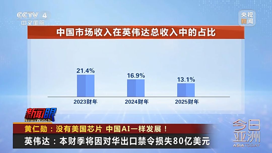 全球最大的AI芯片企业英伟达5月28日发布的财报显示,受美政府对华出口禁令影响,该公司在截至4月底的2026财年第一季度损失45亿美元,预计第二财季将进一步损失80亿美元。此前,中国市场收入在英伟达总收入中的占比已经从2023财年的超过20%,降至2025财年的13.1%。