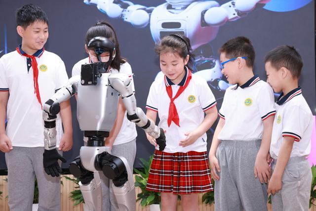 在上海市北郊学校,人形机器人作为特邀嘉宾,与同学们展开互动,为节日活动拉开科技感十足的序幕。