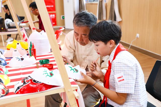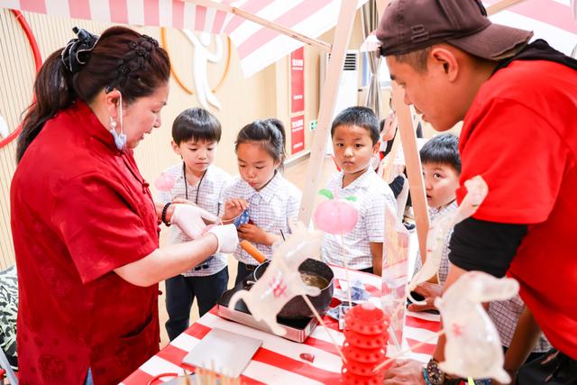 在非遗传承人现场教学,糖画、面塑、脸谱、古法造纸、陶艺、剪纸……“老法师”们手把手教孩子们制作,虽然是第一次体验,但是孩子们兴奋得很。“原来,糖画做起来这么考验手腕的力量,控制不好,就会一下子倒很多。”“光会画画还不行,还得熟练,不然时间久了,原料就凝固了。”……同学们在感受传统文化的深厚底蕴的同时,也让古老的非遗文化焕发出新的生机与活力。