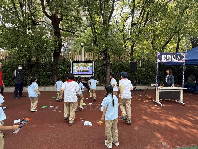 “酷跑达人” 把AI与运动结合,同学们只要站在指定区域内,不用戴AR眼镜,就能通过智能屏幕的摄像头捕捉到他们的动作。只见同学们眼睛紧盯着屏幕,时而跳起,时而跨栏,时而下蹲……在智能障碍赛道上,同学们在速度与智慧碰撞中,体验科技体育的魅力。