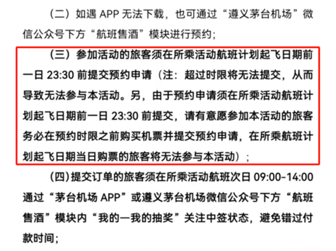发布仅1天后,茅台机场就宣布部分取消乘机100%中签1499元购飞天茅台的活动,让旅客们有些措手不及。