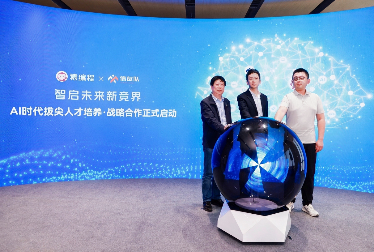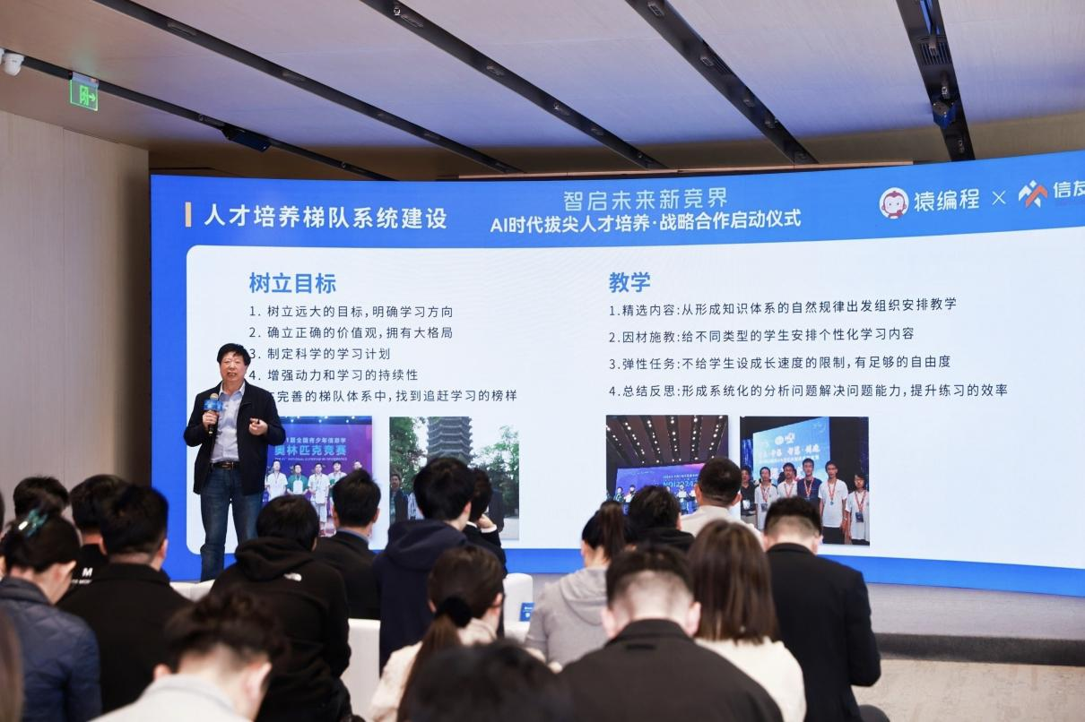 李翊表示:“与信友队的合作,将为我们学员中适合信奥赛道的孩子,提供顶尖的教练资源和培养路径。”信友队联合创始人、国际金牌教练徐源强调:“我们希望通过与猿编程的互补优势,共同打造从科学启蒙到顶尖竞赛的一站式培养体系。”