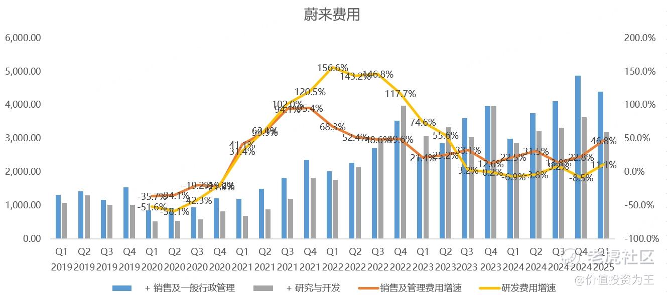 销量增加、收入提升的情况下,净亏损大幅增加,主要是销售及管理费用大幅增长,一季度为44亿,同比增长46.8%,远高于21.5%的收入增速。