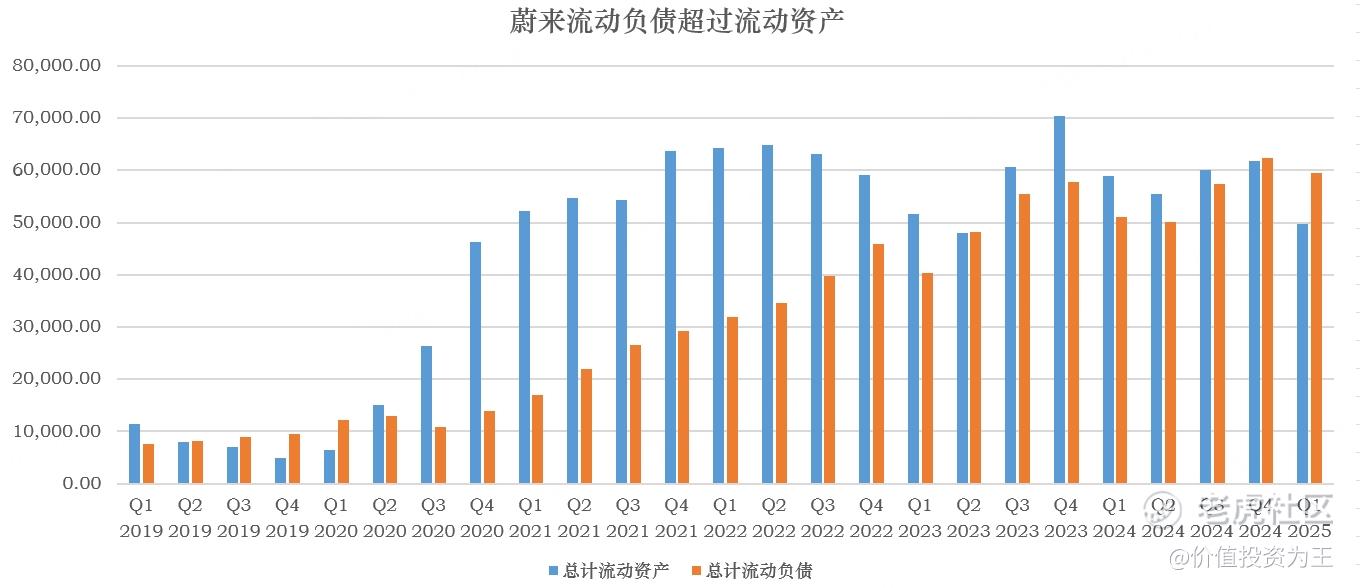 从资产负债的情况来看,蔚来流动负债高达595亿,而流动资产只有498亿: