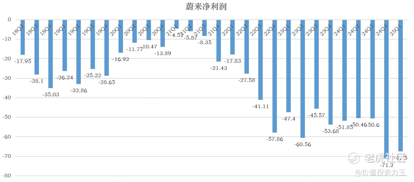其次,蔚来一季度净亏损67.5亿,亏损幅度大幅高于去年同期的52亿: