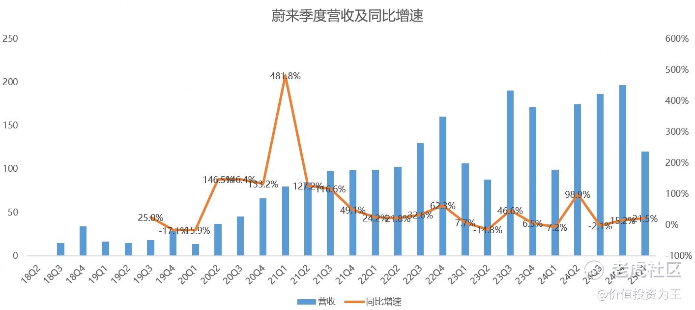 具体来看,蔚来一季度营收120.35亿,同比增长21.5%,但低于分析师预期的123.5亿,亦低于管理层给出的123.67-128.59亿指引: