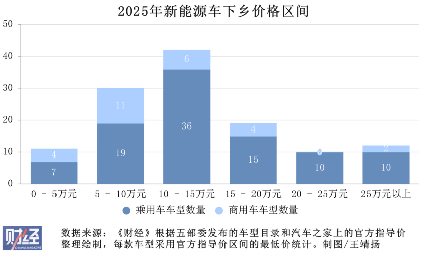 2025年新能源汽车下乡活动开始,今年五成车型价格超过12万元,中高价位车型比往年明显增多。