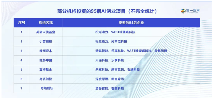 作为专注AI和先进制造等前沿科技领域的投资人,小苗朗程管理合伙人方正浩向第一新声分享了一个新趋势,他发现近期接触的项目中,95后创业者占比已经达到20%左右。
