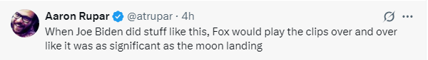 其中一条评论说,“拜登要是做出这种事,福克斯新闻就会一遍又一遍地播放相关片段,好像这和登月一样重大。”