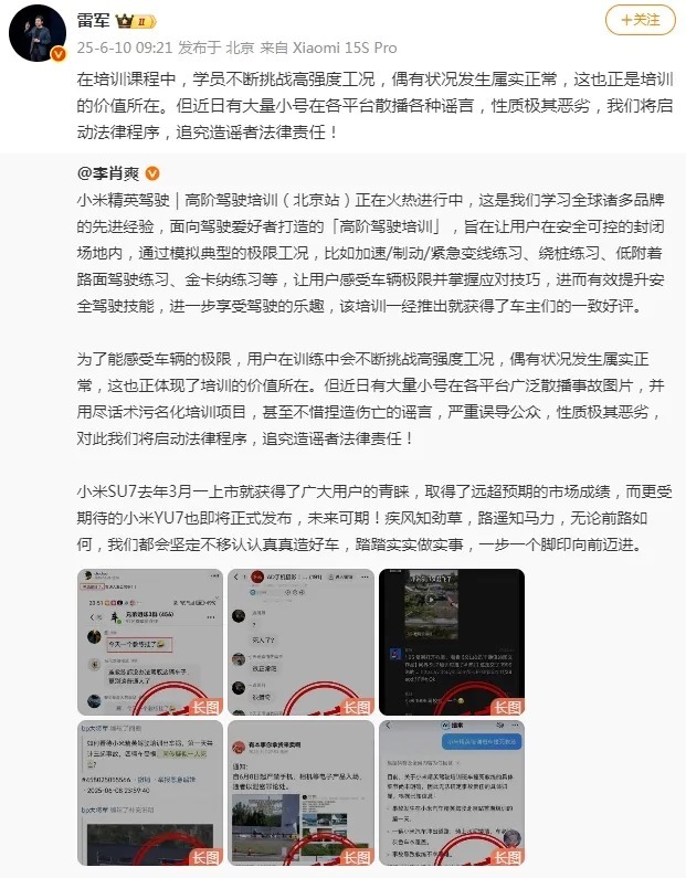 针对近期网传“小米汽车高阶驾驶培训发生致命车祸”传闻,6月10日上午,小米汽车董事长兼CEO雷军在微博发文回应: