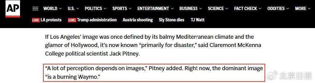 只是,在美联社的这篇报道结尾,引用了克莱蒙特· 麦肯纳学院政治学学者杰克·皮特尼的一句评论: