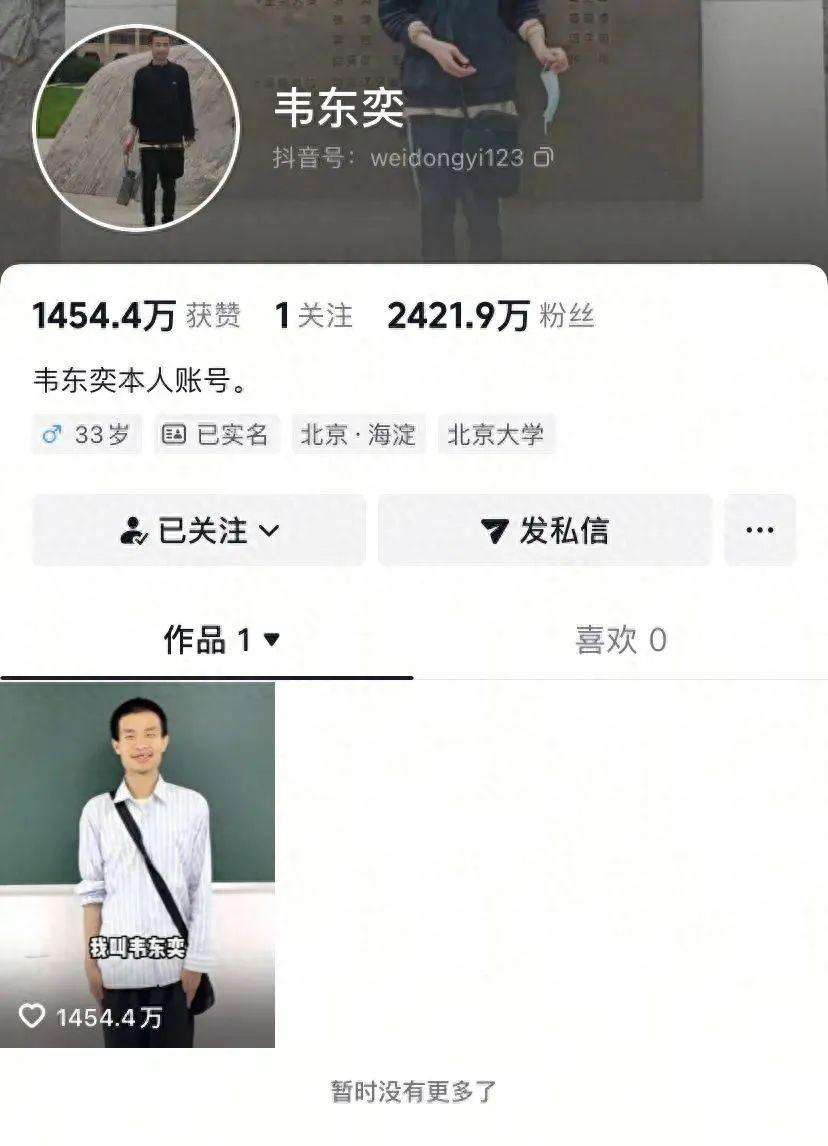近日,北京大学数学科学学院研究员韦东奕开通个人账号,吸引了数以千万计的粉丝关注。