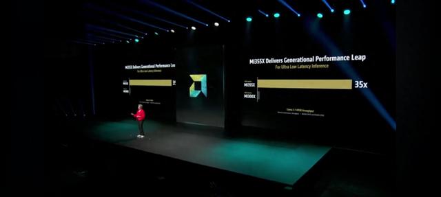 据介绍,MI350系列包含MI350和MI355,两款芯片使用同样的硅片,区别在于MI355支持更高功率。以MI355为例,该芯片支持最新的数据格式,例如FP4,使用最新的HBM3E内存,内存达288GB,晶体管数量达1850亿个。“现在我们可以在单个GPU上运行超5200亿参数的模型。相比上一代MI325,MI350系列实现了35倍的AI推理性能代际增长。”苏姿丰称。