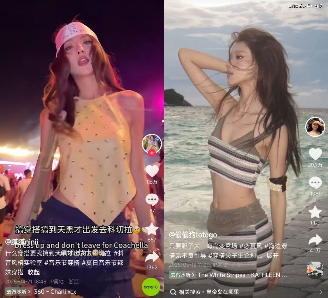 抖音时尚创作者“她是CHENYPU”总结:“恋夏风就是让人看一眼就想赶着去度假的穿搭。”