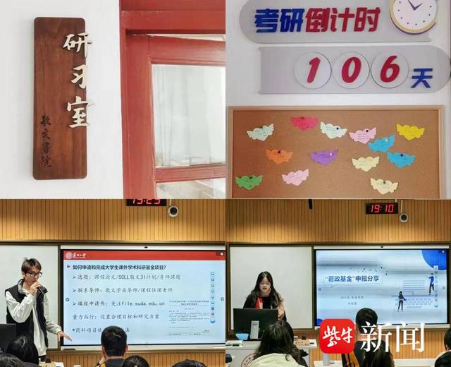如果说自习室是至善班同学们无声的“攻坚战场”,那宿舍便是他们温暖的“学术港湾”。本部的前三楼207宿舍是一个全员“上岸”的“学霸宿舍”。备考期间,为了帮助考研室友顺利面试,她们自发组建了“宿舍复试特训小组”,扮演不同风格的面试专家,全真模拟复试现场。“专业考官”负责专业课考核、“压力测试官”专攻心理防线、“综合面试官”则重点考察临场反应和表达逻辑。从最初的结结巴巴,到后来的对答如流;从最初的紧张胆怯,到能够从容应对各种突发状况,终于,所有的努力都化作了收获的喜悦。“当室友收到录取通知的那一刻,我知道我们成功了!”提及对舍友的这份帮助,已成功推免的朱钱菁不好意思地笑了。