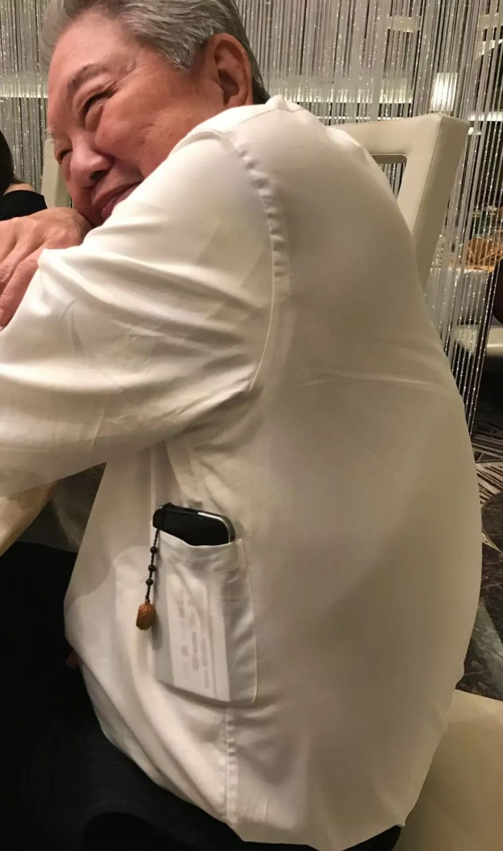 大家都在夸他领带艳丽,衬衫腋下还有个手机袋,他颇得意,说:“You should make fun of everything.”