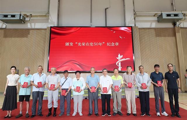 五十载初心如磐,半世纪信仰弥坚。12名老党员代表获颁“光荣在党50年”纪念章。他们历经岁月洗礼,始终坚守对党的忠诚。老党员代表陆信发、吉宝琴与主持人互动,讲述了各自在党旗下的奋斗故事,从参与社区建设到为困难群众提供帮助,点点滴滴的回忆,让全体党员深刻感受到了老一辈的坚定信念和无私奉献精神。