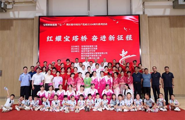 赤诚初心映照百年征程,深情歌舞颂扬党恩浩荡。为庆祝中国共产党成立104周年,6月27日下午,由鼓楼区宝塔桥街道党工委主办、恒盛嘉园社区承办的“红耀宝塔桥·奋进新征程”系列活动在南京市建宁中学举行。