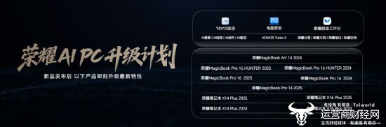 在荣耀MagicBook Art 14 2025发布后,荣耀2024年以来的所有AI PC产品都将即刻升级YOYO助理、电脑管家和超级工作台的最新特性,享受最前沿、新潮的AI PC智慧体验。