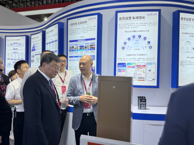 中国物业管理协会会长王志宏一行到访参观霖久科技展台