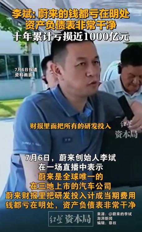 蔚来累计亏损超1000亿元!李斌:钱都亏在明处