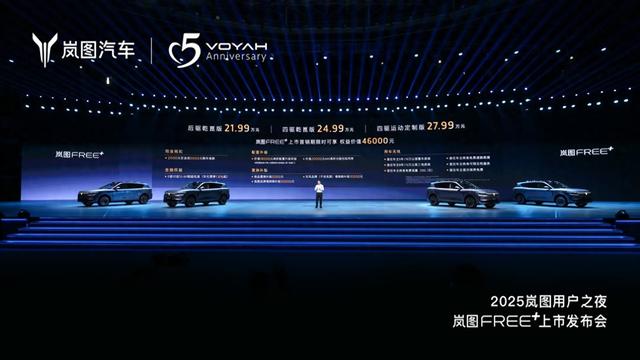 7月12日,岚图用户之夜暨岚图FREE+上市发布会在武汉举行。岚图FREE+迎来正式上市,推出三款车型,售价21.99万元起。其中后驱乾崑版、四驱乾崑版即日起开启交付。同时,岚图还为用户提供价值高达46000元首销权益。
