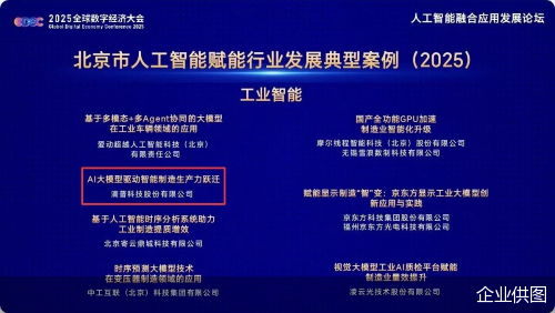 论坛现场,《北京市人工智能赋能行业发展典型案例(2025)》正式对外发布。据了解,该典型案例评选紧扣《北京市推动 “人工智能 +” 行动计划(2024-2025 年)》,聚焦工业智能、教育、医疗、交通等重点领域。由全球数字经济大会组委会组织技术与产业专家,从技术领先性、场景代表性、服务匹配性、推广复制性四个方面进行严格评审,在最终公布的行业标杆案例中,滴普科技等多家企业凭借创新成果成功入选。