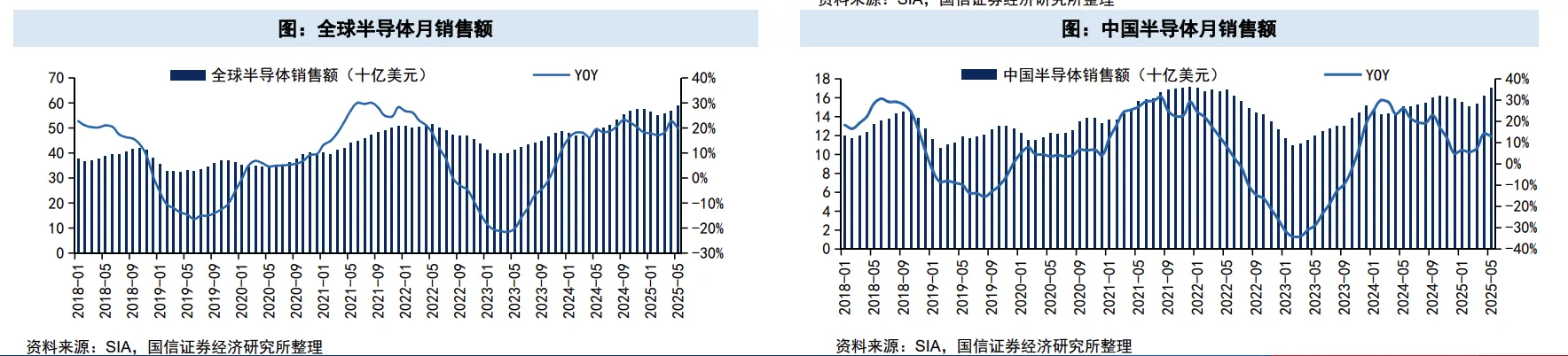 SIA的数据还显示,2025年5月全球半导体销售额为589.8亿美元,同比增长19.8%,环比增约3.5%,已连续19个月同比正增长。