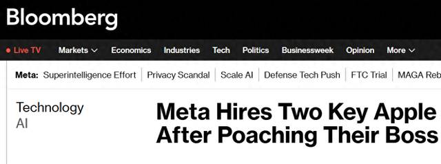与此同时,苹果基础模型团队则持续动荡,其高管考虑用外部模型为Siri等功能提供支持,使团队未来充满不确定性。为留住人才,苹果虽给部分工程师加薪,但与Meta的薪酬相比差距明显。