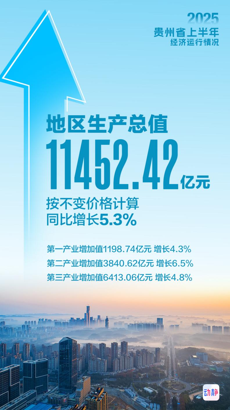 今天(7月21日)下午,贵州上半年经济数据发布,全省地区生产总值(GDP)超过1.1万亿元,同比增长5.3%。
