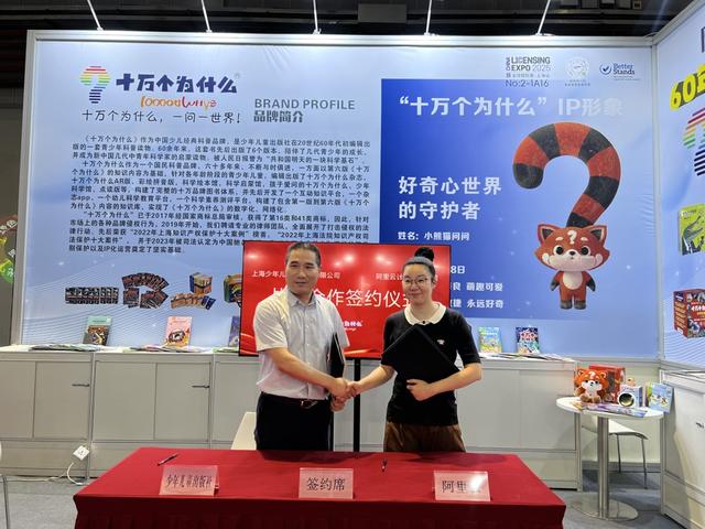 近日,在上海国家会展中心举行的第八届LEC全球IP授权展上,上海少年儿童出版社有限公司携其经典科普品牌“十万个为什么”参展,展示“十万个为什么”这个大IP旗下书刊、智能问答产品、系列文创等众多产品。同时,少儿社分别与阿里云、炯为智能科技、云希谷科技及窗宇画廊签订合作框架协议——标志着 “十万个为什么”正式进入人工智能应用新赛道以及系统性进军XR领域。