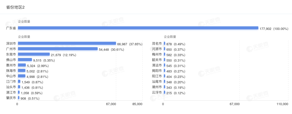 深圳市拥有机器人相关企业近6.7万家,位居全国城市第一位,约占广东省总数的37.65%。