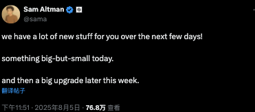 顺便一提,作为毫无惊喜的预告,奥尔特曼同时强调本周晚些时候会有一项“重大更新”。鉴于公司这段日子不断吊业界胃口的举动,市场普遍预期OpenAI下一个重磅更新将是推出GPT-5。