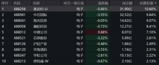 【科创芯片50ETF(588750)标的指数前十大成分股】