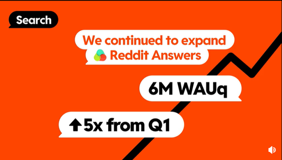 核心搜索功能的周活跃用户已达7,000万,而 Reddit Answers 用户在一个季度内从100万暴增至600万,使Reddit 从依赖Google 流量的平台转变为搜索目的地。这种内容与搜索结合的模式既提升了用户黏性,也创造了新的广告与数据变现场景。