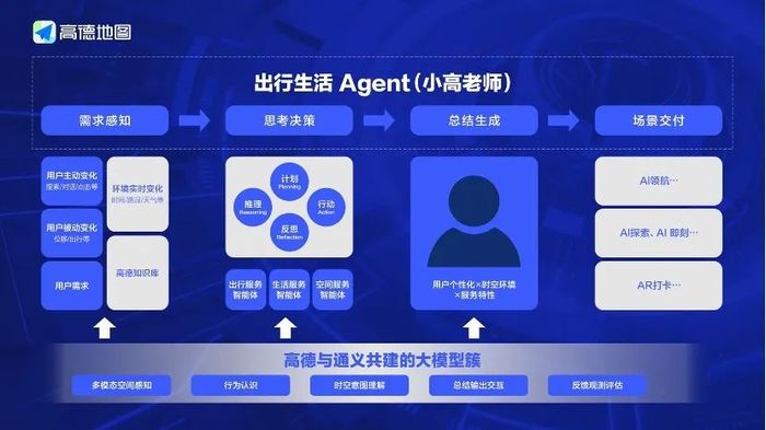 在“小高老师”的背后,是高德与阿里云、通义大模型甚至是阿里巴巴集团层面的深入技术合作。比如,“小高老师”的语音技术和能力,就是高德和阿里云深度共建,全双工语音技术实现人机流畅交流,并支持用户随时打断指令、动态调整规划。