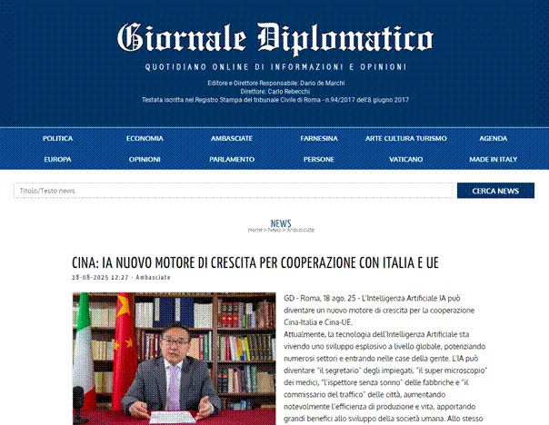财联社8月19日讯,贾桂德大使8月18日在意大利《外交报》发表署名文章《人工智能可以成为中意、中欧合作新的增长点》。