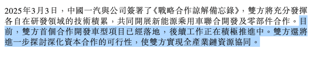 零跑汽车财报披露,目前公司与中国一汽首个合作开发车型项目已经落地,后续工作正在积极推进中,双方还将进一步探讨深化资本合作的可行性,使双方实现全产业链资源协同。