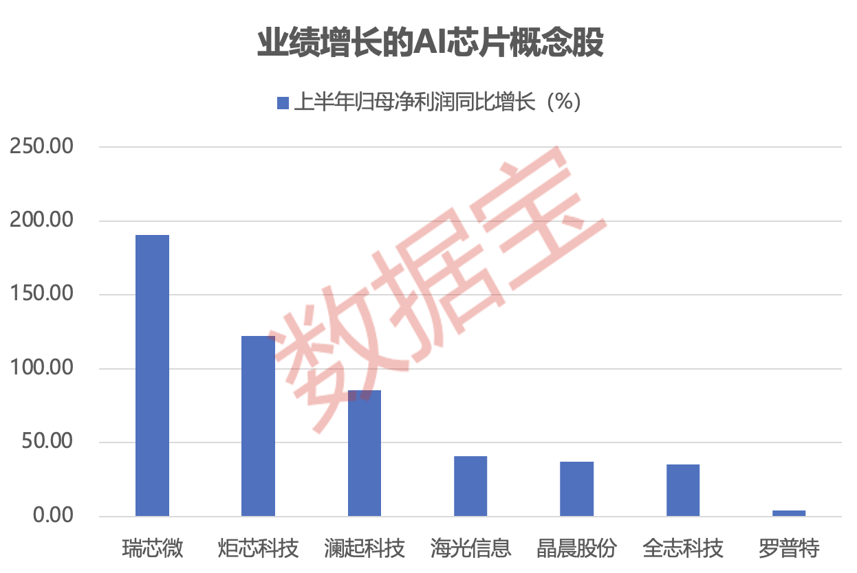 人民财讯8月22日电,今日早盘,A股AI芯片概念集体大涨。据证券时报·数据宝统计,A股中,布局AI芯片的个股共有24只。从业绩上来看,根据目前披露的半年报业绩数据,按照半年报、业绩快报、业绩预告下限(无下限则取公告数值)统计,已公布业绩的11只AI芯片股中,奥比中光-UW扭亏为盈,瑞芯微、炬芯科技、澜起科技等7股归母净利润实现增长。