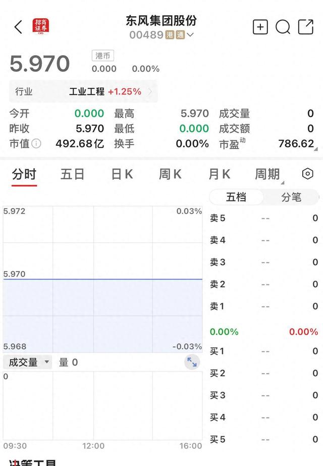 截至发稿,记者查询获悉,东风集团股份总市值为492.68亿港元。