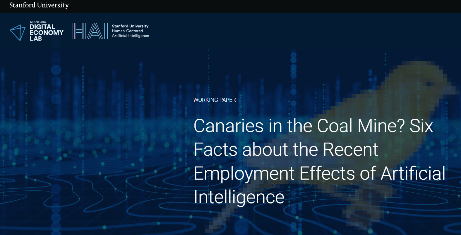 研究作者之一、斯坦福大学经济学家Erik Brynjolfsson表示:“当你专门观察受AI高度影响的年轻劳动者时,会发现一个明显的趋势变化。”